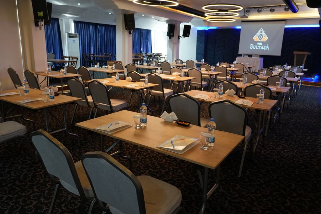Sultaşa Otel, Mersin kongre ve seminer organizasyonları için merkezi konumu, esnek salonları ve tam donanımlı altyapısıyla işinizin başarısı için ideal ortamı sunar.