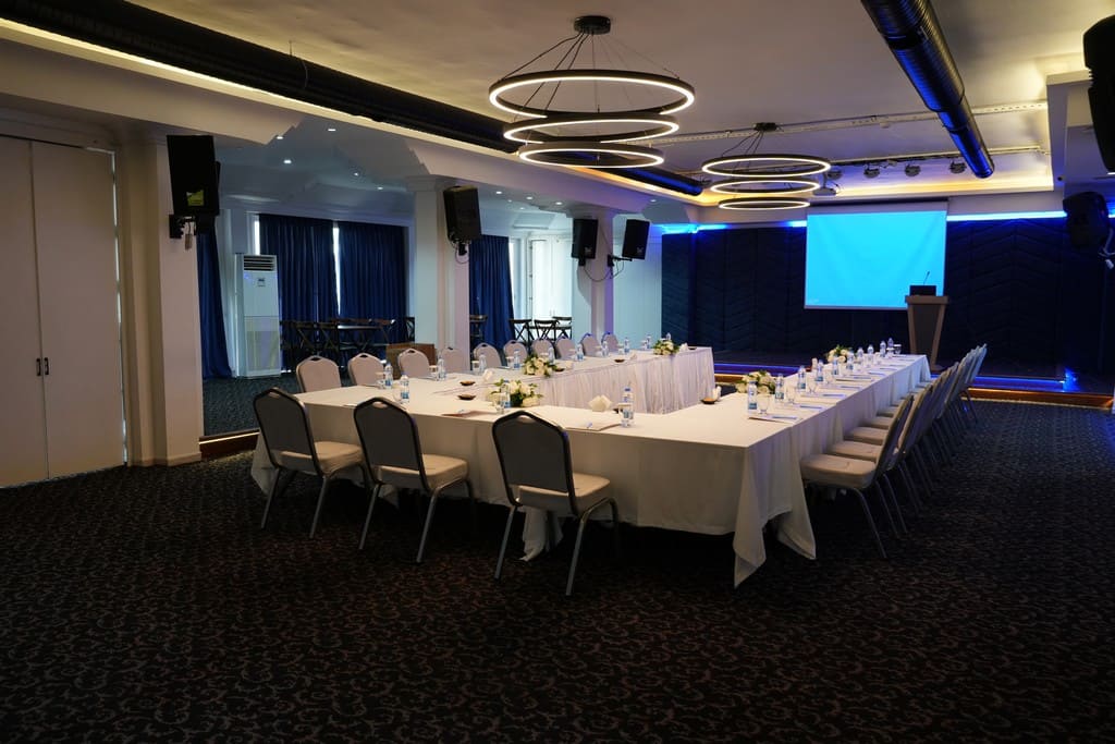 Tüm toplantı salonlarımızda kesintisiz verimlilik için gerekli olan tüm toplantı ekipmanları ücretsiz temin edilmektedir. Mersin toplantı salonu arayışınızda teknoloji ve konforu bir arada sunuyoruz: